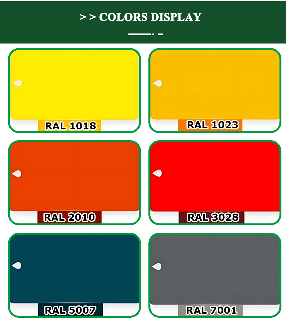Heat insulation and energy-saving powder coating | It can reflect sunlight and effectively lower the indoor temperature | Building roof panels, exterior wall panels, carports, etc | |
