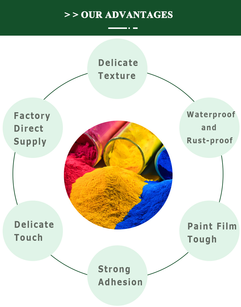 Durable powder coatings | Good aging resistance and corrosion resistance | It is mainly used in industries such as chemical engineering, metallurgy and power, which have high requirements for UV resistance and corrosion resistance, as well as in coastal and plateau areas, and in the construction field where there are special requirements for pollution resistance. | |